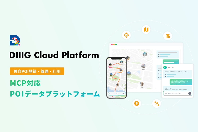 DIIIG Cloud Platformは、独自のPOIデータをクラウドで管理し、Anthropic・OpenAI等のAIが直接利用できるMCP対応プラットフォーム。AIによる位置・地理情報のコンテンツの捏造を防ぐために、POIのグラウンディングを実現し、自然言語での指示だけで旅行アシスタント、物流最適化、位置情報レコメンデーションなどのAIサービスを開発ができます。